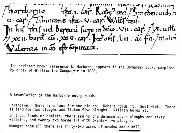 Harborne is first mentioned as having a mill in the Domesday Book in 1086.