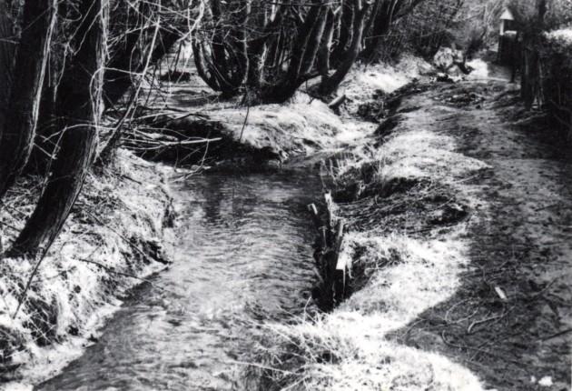 Every few years the brook floods just into the school playground but rarely now reaches the pond.